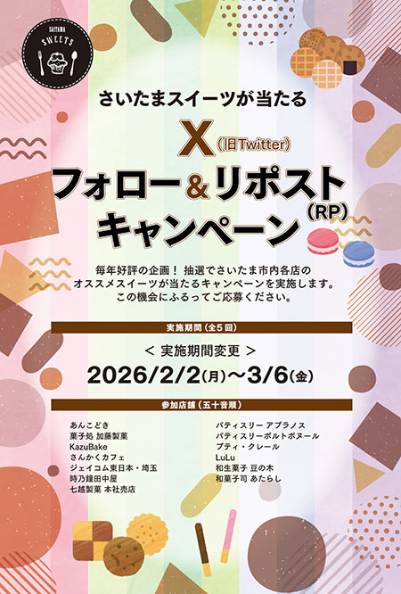 - Xでさいたまスイーツの公式アカウントをフォロー