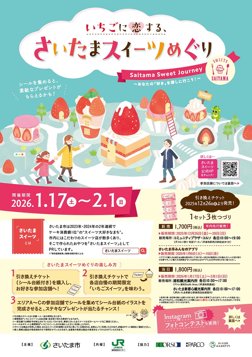 さいたまスイーツ店をめぐり、事前にご購入いただいたチケットと引き換えで、期間限定「いちごスイーツ」が味わえる「いちごに恋する さいたまスイーツめぐり」を開催します。